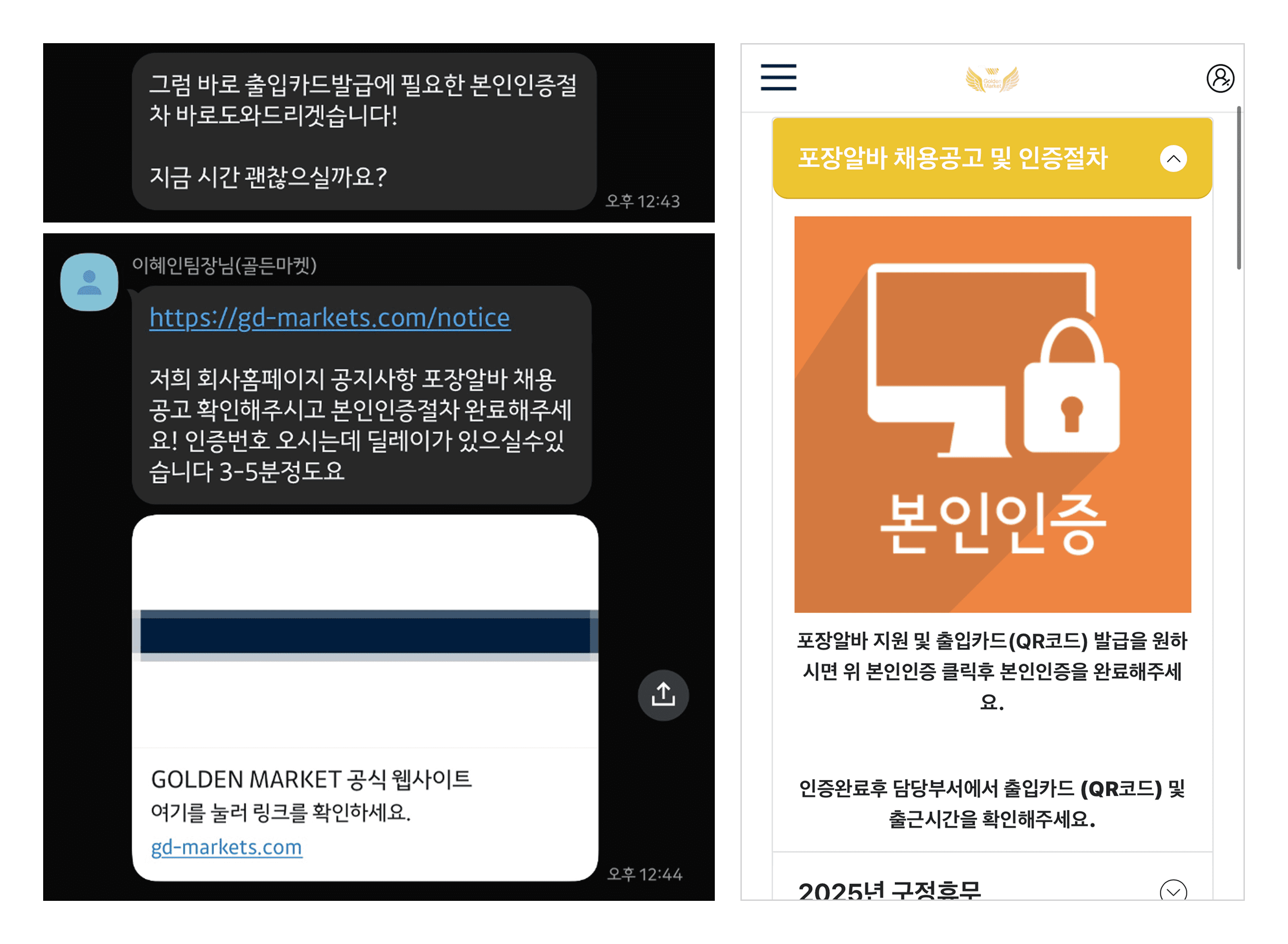 대면 면접 절차 없이 곧바로 본인 인증을 요구합니다.